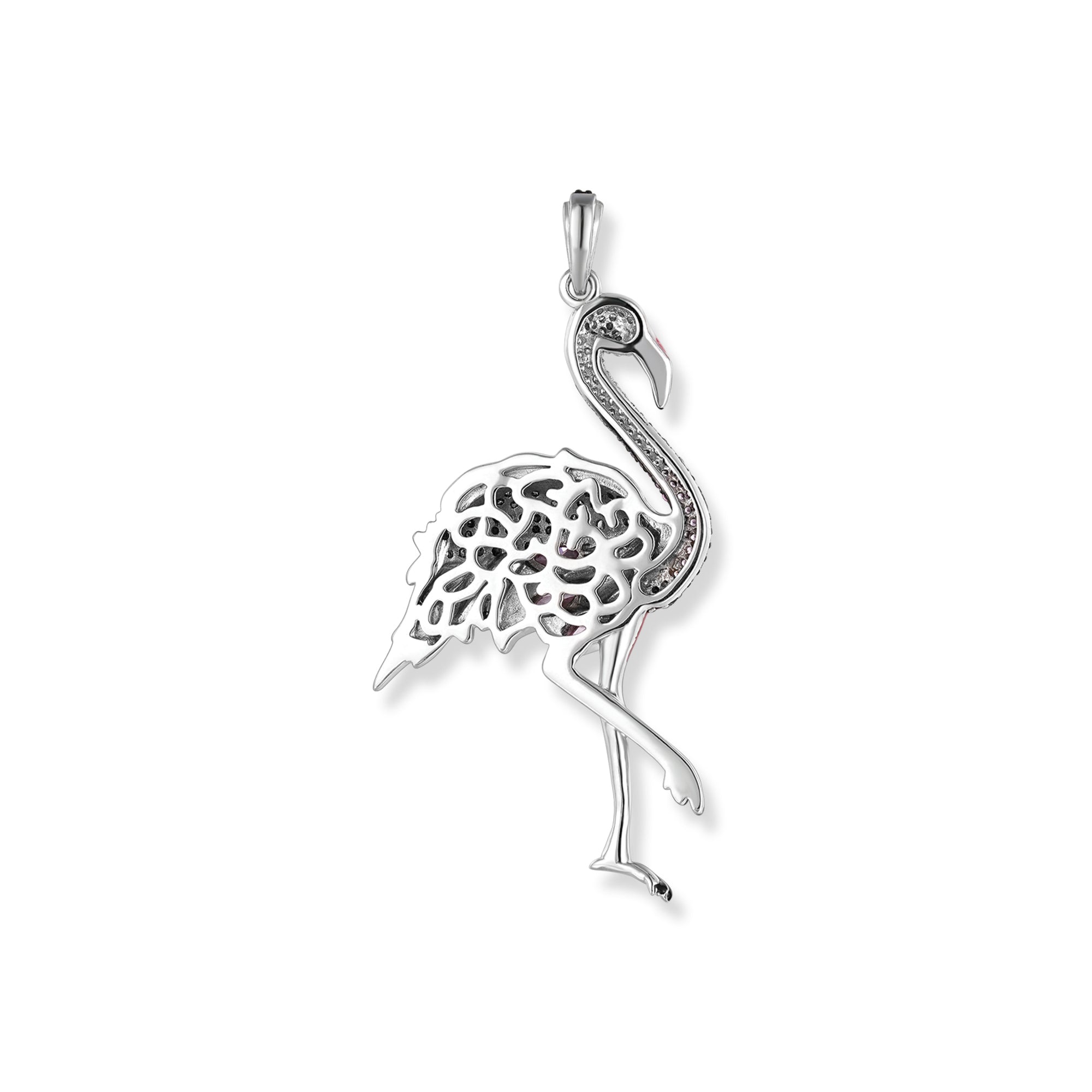 Der rhodinierter Fabio Flamingo Anhänger aus 925er Silber ist ein wahres Kunstwerk der Eleganz. Die farbigen Zirkonia in Kombination mit rosa-weißer und schwarzer Emaille verleihen dem Anhänger eine anmutige Ausstrahlung.