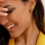 Kiani Leoparden Ohrringe sind ein Blickfang aus 925 Sterling Silber, vergoldet für zusätzlichen Glanz. Die runden Stecker sind mit einem funkelnden grünen Zirkonia akzentuiert und zeigen eine elegante Leopardenstruktur in schwarzer Emaille. Diese Ohrringe verkörpern raffinierte Ästhetik und Naturinspiration.