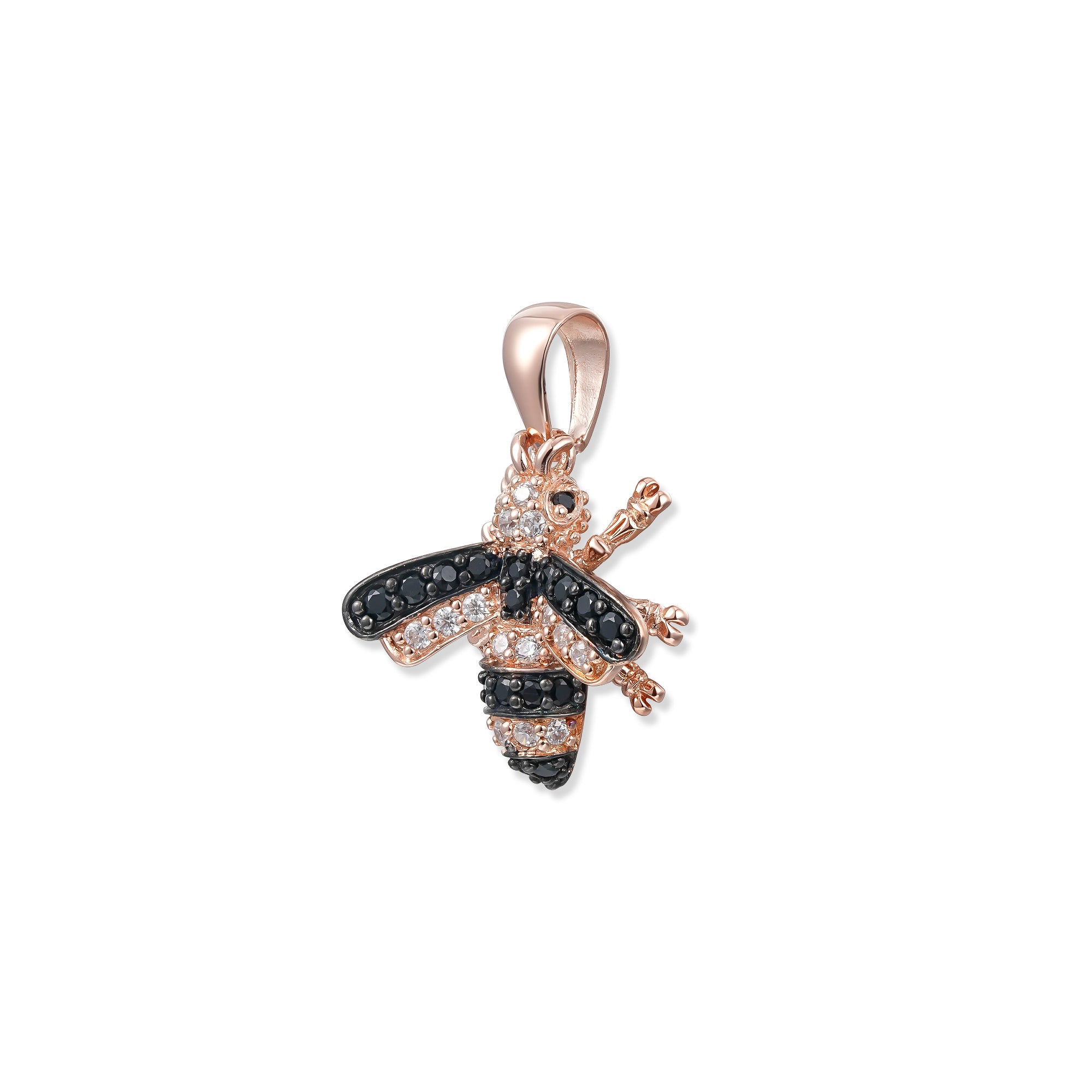 Zart, edel, geheimnisvoll: Der Misty Bienen Anhänger in 18K Rosévergoldung mit schwarzen Zirkonia ist das elegante Pendant zur Sunny-Biene – aus der SEINERZEIT Waldleben Kollektion.