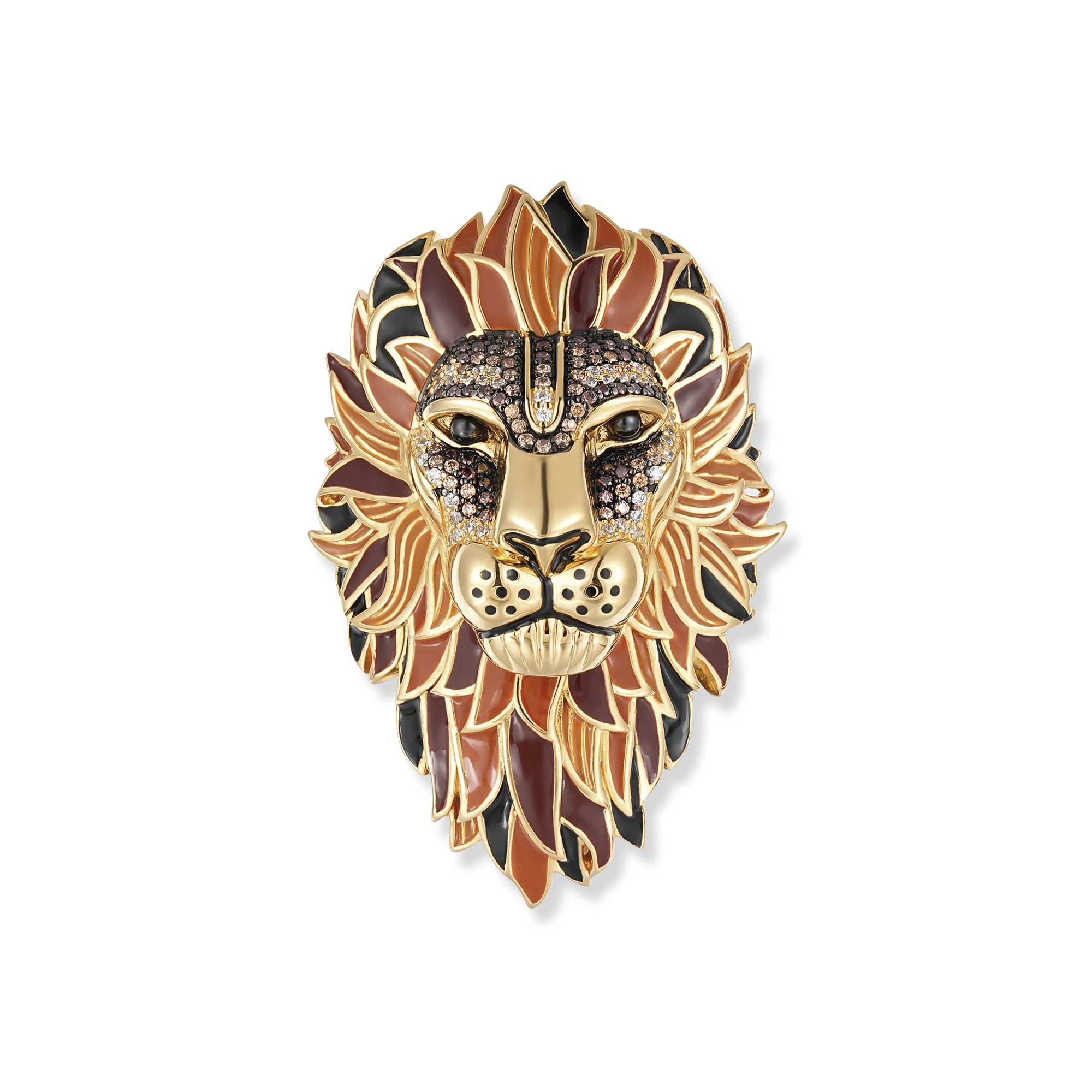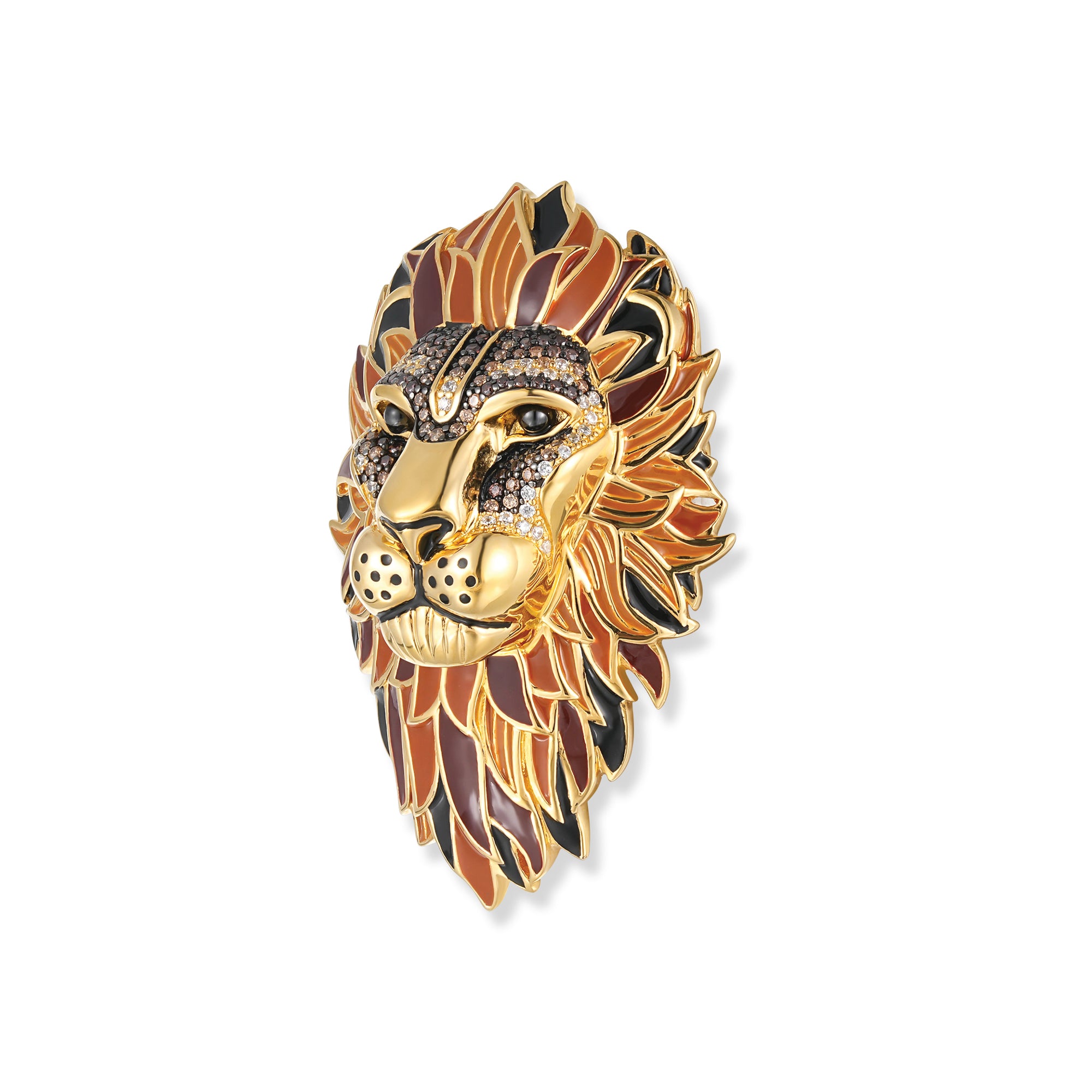 Der Richard Löwen Anhänger/Brosche kombiniert kraftvolles Silber 925'er mit eleganter Vergoldung und kunstvoller Emaille-Verzierung für einen majestätischen Look.